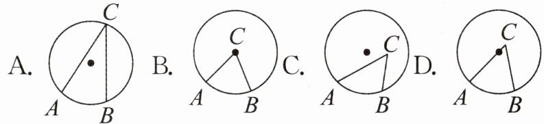 1. 下列图形中,$∠ACB$属于圆心角的是 (