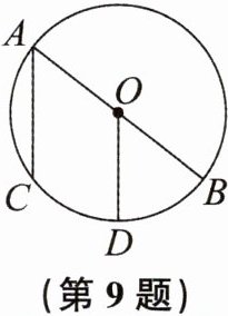 9. 如图,$AB是⊙O$的直径,$C是⊙O上异于点A$,$B$的一点,$OD$为半径,且$OD// AC$. 求证:$\overset{\frown}{CD}= \overset{\frown}{BD}$.