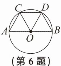 6. 如图,$AB是⊙O$的直径,如果$∠COA= ∠DOB= 60^{\circ}$,那么与$\overset{\frown}{AC}$相等的弧有