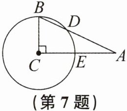 7. 如图,在$Rt△ABC$中,$∠C= 90^{\circ}$,$∠A= 25^{\circ}$,以点$C$为圆心,$BC长为半径的圆交AB于点D$,交$AC于点E$,则$\overset{\frown}{BD}$的度数为