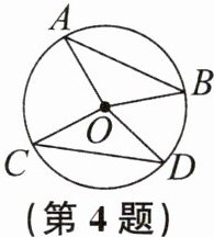 4. 如图,在$⊙O$中,将$∠AOB绕圆心O按顺时针方向旋转得到∠DOC$.若$∠A= 35^{\circ}$,则$\overset{\frown}{CD}$的度数为 (