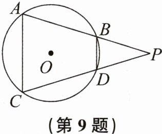 9. 如图,点$A$,$B$,$C$,$D在\odot O$上,且$AC// BD$,延长$AB$,$CD相交于点P$。求证:$PA= PC$。