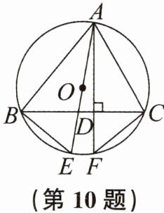 10. 如图,$AB$,$AC是\odot O$的弦,$AD⊥BC于点D$,交$\odot O于点F$,$AE是\odot O$的直径。求证:$\overset{\frown }{BE}= \overset{\frown }{CF}$。