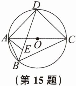 15. 如图,点$A$,$B$,$C$,$D在\odot O$上,$AC是\odot O$的直径,$BD平分∠ABC$。