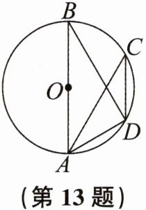 13. 如图,$C$,$D两点在以AB$为直径的圆上,$AD= 2$,$∠ACD= 30^{\circ }$,则$\odot O$的半径为____