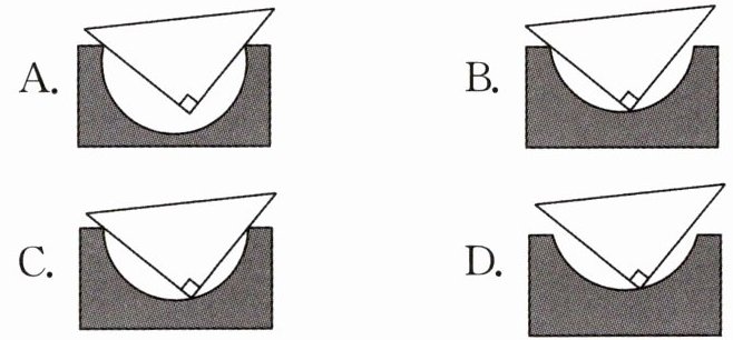 4. 用三角尺检查带半圆形凹槽的工件,下列工件中,合格的是(