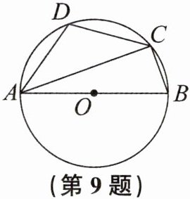 9. 如图,$AB是\odot O$的直径,$C,D是\odot O$上的两点,且$∠BAC= 20^{\circ },\overset{\frown }{AD}= \overset{\frown }{CD}$.求: