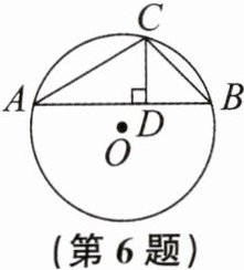 6. 如图,△ABC内接于⊙O,∠CAB= 30°,∠CBA= 45°.CD⊥AB于点D.若⊙O的半径为2,则CD的长为