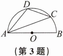 3. 如图,AB是半圆的直径,O为圆心,C是半圆上的点,D是$\overset{\LARGE{\frown}}{AC}$上的点,连结AC.若∠BAC= 20°,则∠D的度数为 (