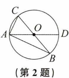 2. 如图,△ABC内接于⊙O,AD是⊙O的直径,若∠CAD= 65°,则∠B的度数为 (