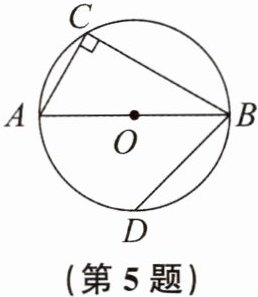 5. 如图,点A,B,C,D在圆上,∠C= 90°,D为$\overset{\LARGE{\frown}}{AB}$的中点.若AC= 1,DB= 2,则BC的长为