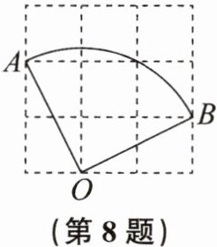 8. 如图,在$3×3$的方格中,每个小方格都是边长为1的正方形,O,A,B是格点,则扇形AOB的面积为