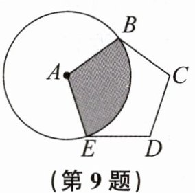 9. 如图,正五边形ABCDE的边长为5,以顶点A为圆心,AB的长为半径画圆,则圆与正五边形重叠部分(图中阴影部分)的面积为