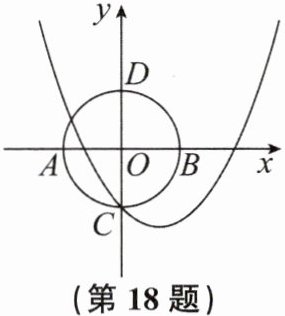 18. (14分)如图,抛物线$y= x^{2}-x-1与y轴交于点C$,以原点$O$为圆心,$OC的长为半径作\odot O$,交$x轴于A$,$B$两点,交$y轴于另一点D$.设点$P为抛物线y= x^{2}-x-1$上的一点,作$PM\perp x轴于点M$,求使$\triangle PMB\backsim\triangle ADB时的点P$的坐标.