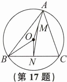 17. (12分)如图,已知锐角三角形$ABC的外心为O$,线段$OA和BC的中点分别为M$,$N$.若$\angle ABC= 4\angle OMN$,$\angle ACB= 6\angle OMN$.求$\angle OMN$的度数.