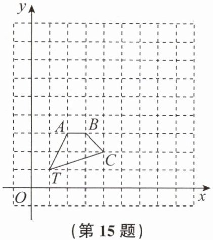 15. (8分)如图,在正方形网格中,四边形$TABC的顶点坐标分别为T(1,1)$,$A(2,3)$,$B(3,3)$,$C(4,2)$.