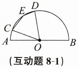 互动题8-1 如图,$AB为半圆O$的直径,$AB= 4$,$C$,$D为\overset{\frown}{AB}$上的两点,且$\overset{\frown}{AC}= \frac{1}{5}\overset{\frown}{BD}$.若$\angle CED= \frac{5}{2}\angle COD$,则$\overset{\frown}{BD}$的长为(