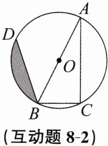 互动题8-2 如图,$AB为\odot O$的直径,点$C$,$D在\odot O$上,且$BC= 2cm$,$AC= 4cm$,$\angle ABD= 45^{\circ}$.求: