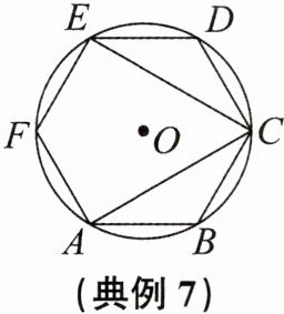 典例7 (2024秋·温州期末)如图,在半径为3的$\odot O$上,以3为半径依次截取六个点,并连结得六边形$ABCDEF$.连结$AC$,$CE$,则四边形$ACEF$的面积是______