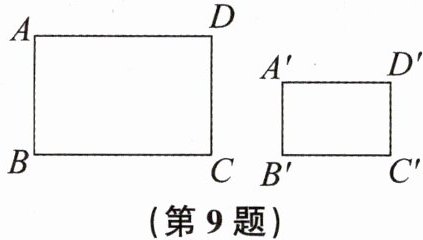 9. 如图,在矩形ABCD和矩形$A'B'C'D'$中,$AB = 6$ cm,$BC = 9$ cm,$A'B' = 4$ cm,$B'C' = 6$ cm。