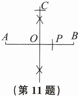 11. 如图,画线段AB的垂直平分线交AB于点O,在这条垂直平分线上截取$OC = OA$,以点A为圆心,AC长为半径画圆弧,交AB于点P,则线段AP与AB长的比是(