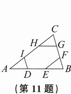11. 如图,在$\triangle A B C$中,$D$,$E$,$F$,$G$,$H$,$I均为\triangle A B C$三边的三等分点,$\triangle A B C$的面积为9,则六边形$DEFGHI$的面积为(