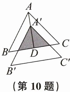 10. 如图,将$\triangle A B C沿BC边上的中线AD平移到\triangle A ^ { \prime } B ^ { \prime } C ^ { \prime }$的位置,已知$\triangle A B C$的面积为16,阴影部分三角形的面积为9,若$A ^ { \prime } D = 3$,则$AA ^ { \prime }$的长为(