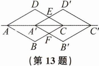 13. (1)如图,将菱形$ABCD沿着直线AC向右平移后得到菱形A'B'C'D'$,求证:四边形$A'FCE$是菱形,且菱形$A'FCE\backsim菱形ABCD$。