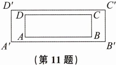 11. 如图,一幅长90cm、宽30cm的矩形书画$ABCD$,装裱后整幅画为矩形$A'B'C'D'$,两矩形的对应边互相平行,且$AB与A'B'$的距离、$CD与C'D'$的距离都等于4cm。当$AD与A'D'$的距离、$BC与B'C'距离都等于a$cm,且矩形$ABCD\backsim矩形A'B'C'D'$,整幅书画最美观。此时,$a$的值为______