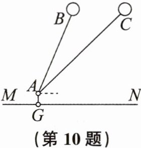 10. “儿童散学归来早,忙趁东风放纸鸢。”随着春季的来临,放风筝已成为孩子们的最爱。周末小冬和爸爸一起去公园放风筝,如图,当小冬站在G处时,风筝在空中的位置为点B,仰角为$67^{\circ }$,小冬站在G处继续放线,当再放2米长的线时,风筝飞到点C处,此时点B,C离地面MN的高度恰好相等,C点的仰角为$44^{\circ }$。若小冬的眼睛与地面MN的距离AG为1.6米,请计算风筝离地面MN的高度(结果保留整数。参考数据:$sin44^{\circ }\approx 0.7$,$sin67^{\circ }\approx 0.9$,$cos67^{\circ }\approx 0.4$)。