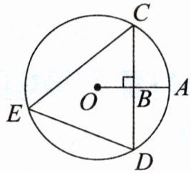 互动题3-1 如图,OA是$\odot O$的半径,$OB= AB$,弦$CD\perp OA$于点B,点E在$\odot O$上,连结EC,ED,则$\angle CED$的度数为