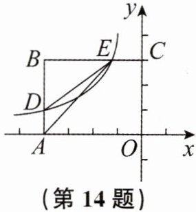 14. 如图,在平面直角坐标系中,四边形OABC是矩形,且$A(-4,0),C(0,3)$.反比例函数$y= \frac {k}{x}$的图象与边AB,BC相交于点D,E,连结DE,AE,则当$k= $