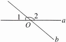 2. 如图,直线a,b相交于点O,若$∠1等于40^{\circ}$,则$∠2$等于()
