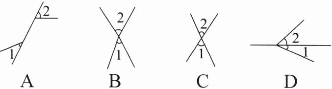 6. 下列图形中,$∠1与∠2$是对顶角的是()
