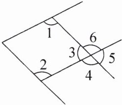 解:图中的同位角有∠1与∠4,∠2与∠6;内错角有∠1与∠6,∠2与∠4;同旁内角有∠1与∠3,∠2与∠3.