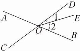 9. 如图,已知直线AB,CD交于点O,且$∠1:∠2= 2:3$,$∠AOC= 60^{\circ}$,求$∠2$的度数.