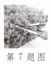 7. 如图是园艺工正在修剪花木,当$∠1= 40^{\circ}$时,$∠2$的度数是()