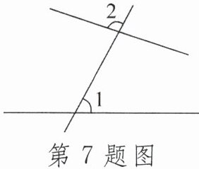 7. 如图,如果$∠2= 100^{\circ}$,那么$∠1$的同旁内角等于____$^{\circ}$.