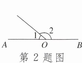 2. 如图,点O在直线AB上,若$∠1= 40^{\circ}$,则$∠2$的度数是()