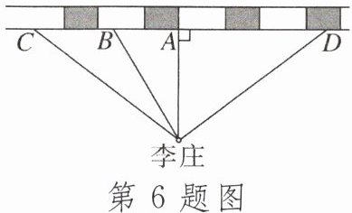 6. 如图,在铁路旁有一李庄,现要建一火车站,为了使李庄人乘车最方便,请你在铁路线上选一点来建火车站,应建在____.