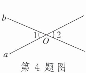 4. 如图,直线a,b相交于点O,$∠1= 50^{\circ}$,则$∠2= $____$^{\circ}$.