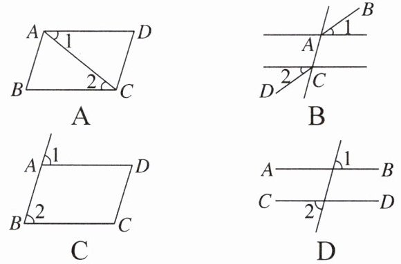 3.如图,由$∠1= ∠2能得到AB// CD$的是()