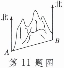 11.如图,在修高速公路时,为节省时间,在山的两面$A$,$B$同时开工,在$A处测得洞的走向是北偏东75^{\circ }$,那么在$B$处应该按____方向开工,才能使山洞准确接通.