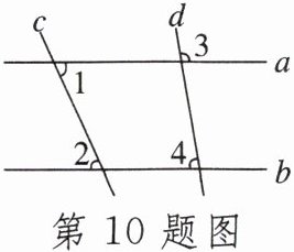 10.如图,$∠1= ∠2且∠3= 108^{\circ }$,则$∠4$的度数为()