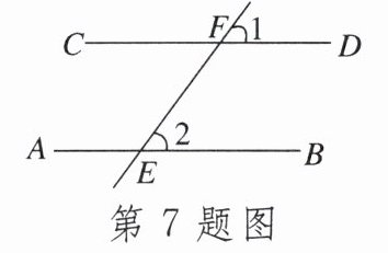 7.如图,$AB// CD$,$EF分别交AB$,$CD于点E$,$F$,$∠1= 50^{\circ }$,则$∠2$的度数为()
