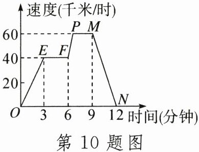 10.如图,图象(折线OEFP-MN)描述了某汽车在行驶过程中速度与时间的关系,下列说法中错误的是()