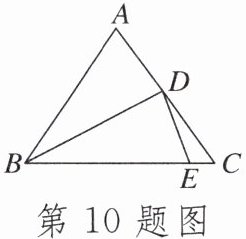 10. 如图,在$\triangle ABC$中,$AD= DE$,$AB= BE$,$∠A= 70^{\circ }$,则$∠DEC$的度数为____.