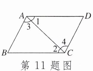 11. 如图,$∠1= ∠2$,$∠3= ∠4$,且$AB= 6$,则$CD$的长为____.