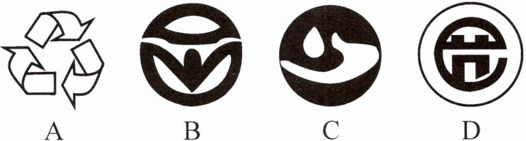 1. 在以下回收、绿色食品、节水、节能四个标志中,是轴对称图形的是()