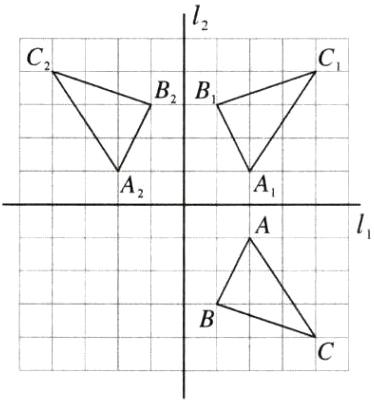 (2)画出$\triangle A_{1}B_{1}C_{1}关于l_{2}对称的\triangle A_{2}B_{2}C_{2}$.